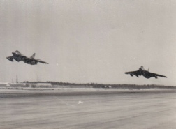 was placed under the command of Squadron Leader John H Granville-White, who had already flown in anger the Hunter's principal competitor, the North American F-86F Sabre, in Korea. He had combat experience, had shot down a MiG 15, had been credited with a second 'probable' and had been awarded the USAF's Air Medal and Distinguished Flying Cross. This was 'GW's first squadron command and the year ahead was to be an interesting year , beginning with an Armament Practice Camp at Akrotiri then, shortly after that in July 1958, the detachment with BRITFORJOR to Amman in Jordan after the military coup initiated by General Kassam and the assassination of the whole Iraqi Royal Family, a tragic and barbaric event.