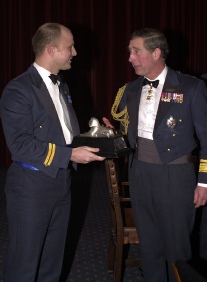 The Prince also presented the Geoffrey Bromet Memorial Trophy to Flight Lieutenant Pete Sharpe for his excellent performance as the year's solo Hawk Display Pilot.