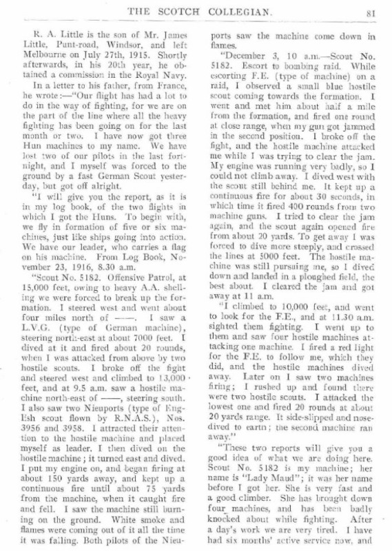 On 23 November 1916 Little scored his first aerial victory, over a German two-