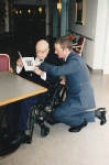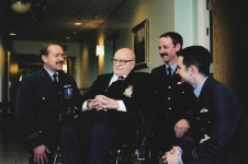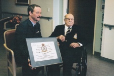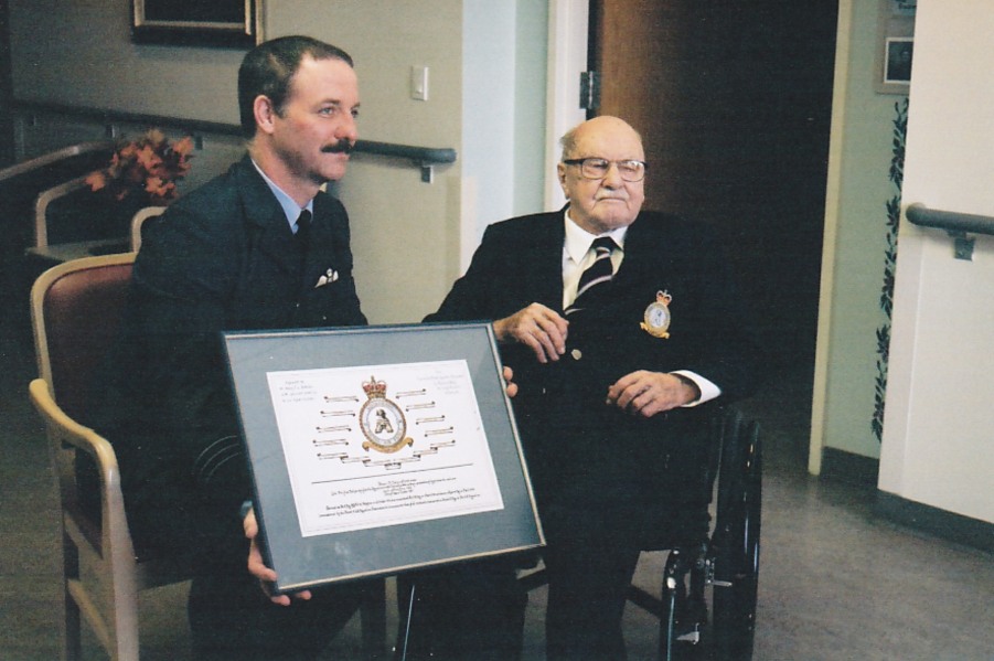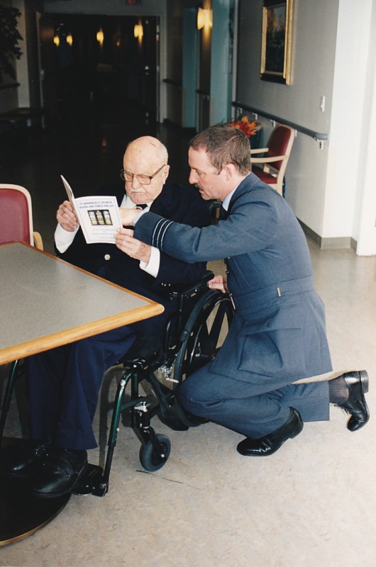Henry was resident in the George Hees Veterans’ Wing of the Sunnybrook Hospital in Toronto, where we arrived the next morning, appropriately dressed for this momentous occasion in No 1 Uniform. Henry welcomed us, also very dapper in flannels and a blazer, porting the 208 Squadron crest.