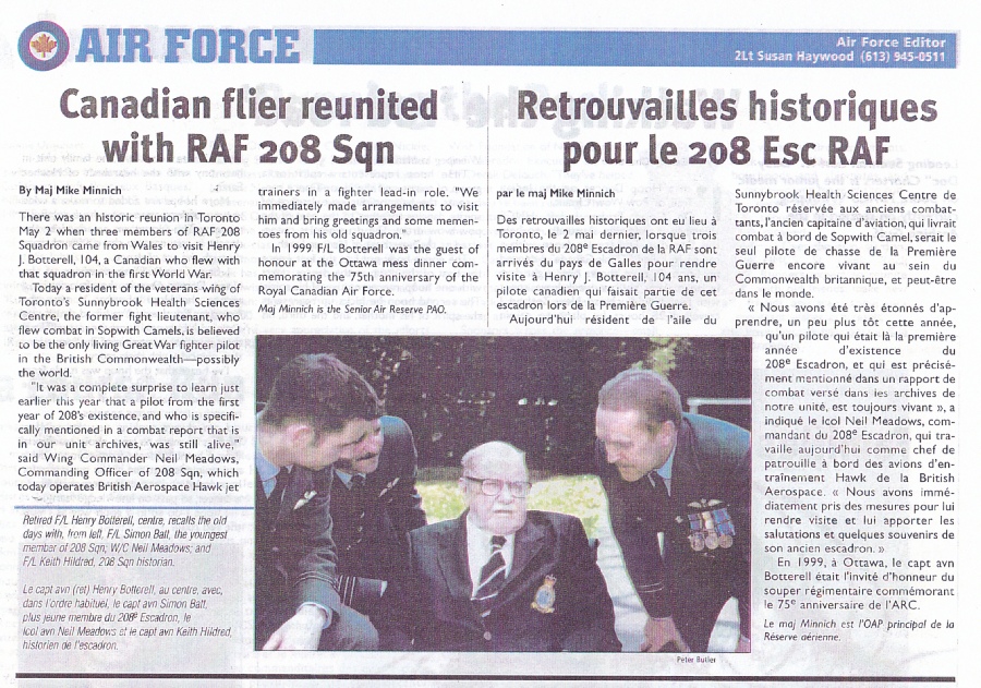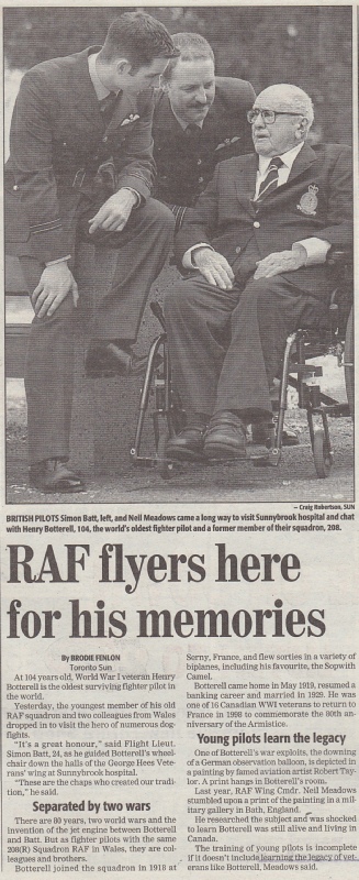 Our visit was well covered by the press, both in Canada and in the UK. There were articles in the Toronto Sun, the Canadian Airforce Magazine, the Canadian Maple Leaf Magazine, the MOD’s Focus Magazine, RAF News and the Sunday Times. Click on the images below to read the articles.