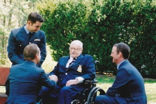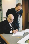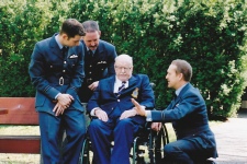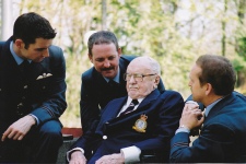 Then it was Henry’s turn to present several items to the Squadron. Henry’s son, Edward, had compiled photocopies of Henry’s flying log book for each of us, which Henry kindly signed and dedicated to the Squadron. These are now in the possession of the RAF Museum.