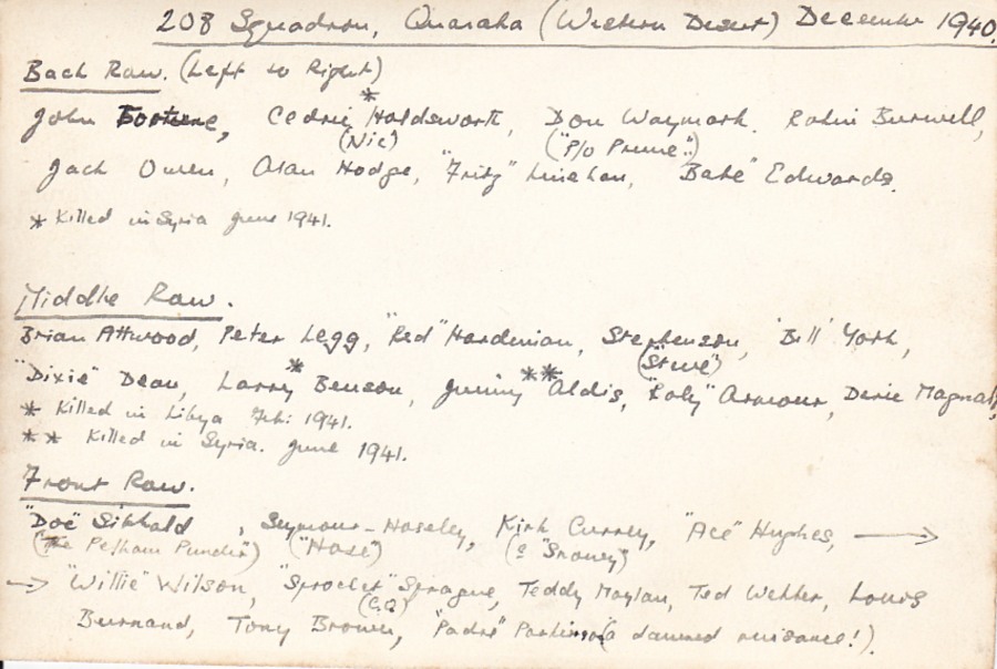 ‘Willy’ Wilson – Sqn Ldr J R Wilson, awarded DFC on 9 July 1941; Mentioned in Dispatches 25 September 1941; OC 208 Squadron 16 December 1940 to 6 October 1941