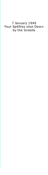 …... identifiable landscape. It took us several more recces to find an ambulance with the Star of David on it driving past an identifiable crossroads. We carried on keeping an eye on the action and on one occasion found a captured Egyptian Spitfire being towed behind a lorry on its way to Israel. On 7th January our four did not come back so we mounted a search. We asked the Tempest Wing at Deversoir to give us some top cover but they said it would be difficult as they had stood down