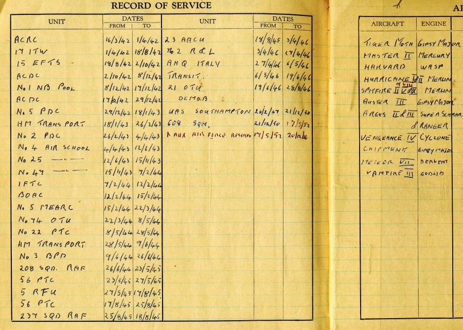 70 years ago, the numbers of surviving veterans of that era are inexorably dwindling. It is therefore encouraging to know that there are several schemes to collect and preserve their reminiscences before it is too late: one such initiative is the Memory Project, an on-line collection of recordings of the verbal recollections of Canadian veterans. Amongst these is former Pilot Officer Robert Ellis Knowlton, who served as a photo-recce pilot on Spitfires with 208 Sqn in Italy during the closing stages of the war. Ellis’ recording is accessible via the Memory Project Website, which also provides a transcript and several photographs to accompany the recording. Space does not permit the full transcript to be reproduced here, but the following extract should give a flavour of what is available via the Memory Project: