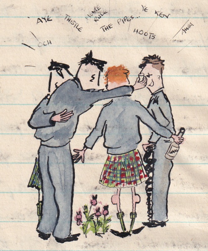 The Biggin Hill Mob Ian Craig, Ray Offord, Moose Davis and John Hext arrived over the weekend and so brought the Squadron to full strength save one. With almost everyone accounted for the 208th has taken on the shape of a Scots Mission for the Improvement of the Middle East; it is rumoured that Scots-