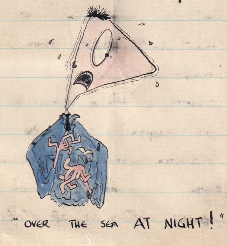 battle forms getting airborne, many pairs going after them to indulge in a little 'doggers' or cine and the frequent singleton flashing, usually lost, through the low flying area on a low-level cross country. In connection with the cross-countries the 208th advertised their presence by calling forth complaints from Fish-head establishments at Yeovilton and Worthy Down Range who both reported violation by low, fast-moving, swept-wing pursuit ships. Monday night was spent in nocturnal aviation and from five until eleven engines moaned across two routes , one over land and the other over oggin, propelling petrified pilots towards pit via points A, B and C.