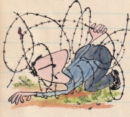 Being so near to the sea it is easy to understand why every opportunity was taken over the weekend to either swim or gander along the shore in search of some good swimming spot for future use. Thus it was that one party comprising Pete Botters, Ray Offord, Tom Sheppard, Kel Thomas, Wee Wee Tim and Drac Fraser set out westward on Sunday afternoon and in the course of their ramble negotiated a barbed-