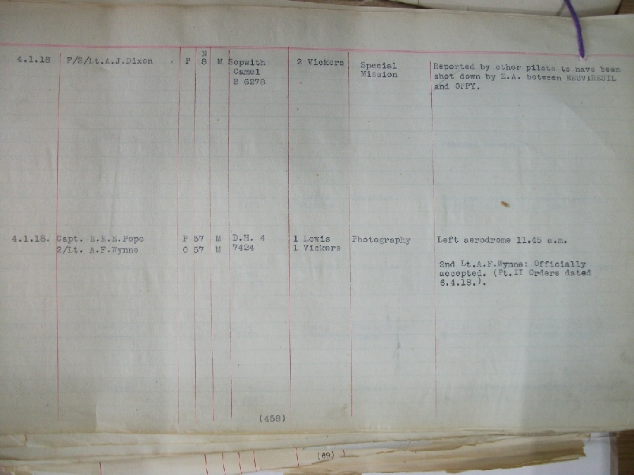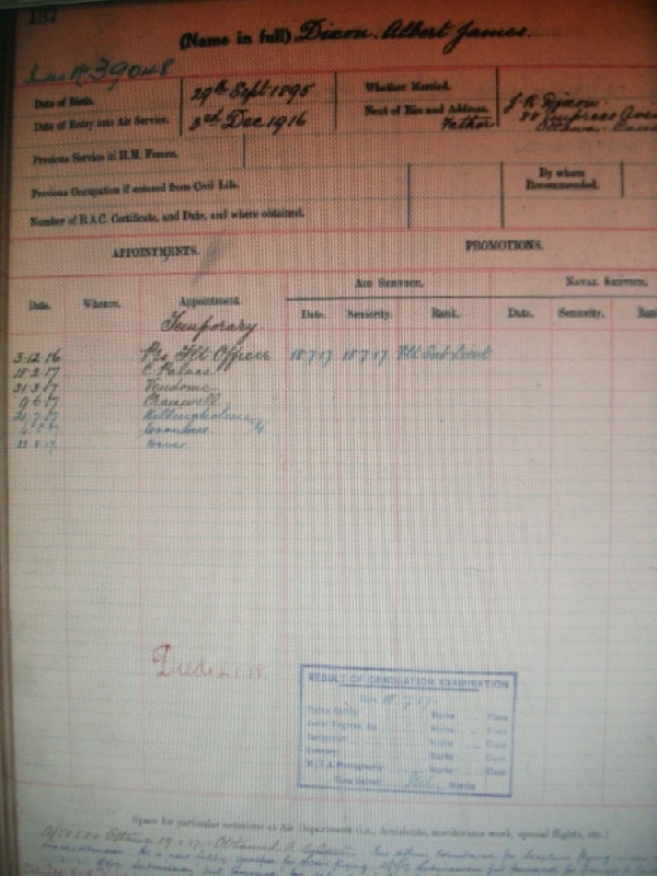 Flight Sub-LieutenantA J DixonRoyal Naval Air Service