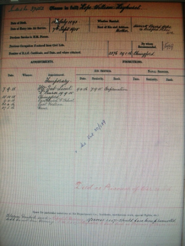 Flight Sub-LieutenantW H HopeRoyal Naval Air Service