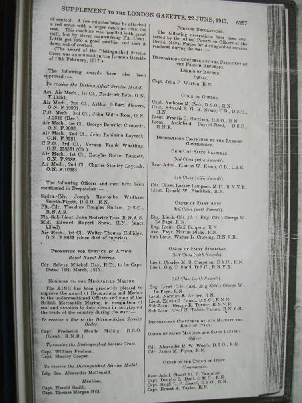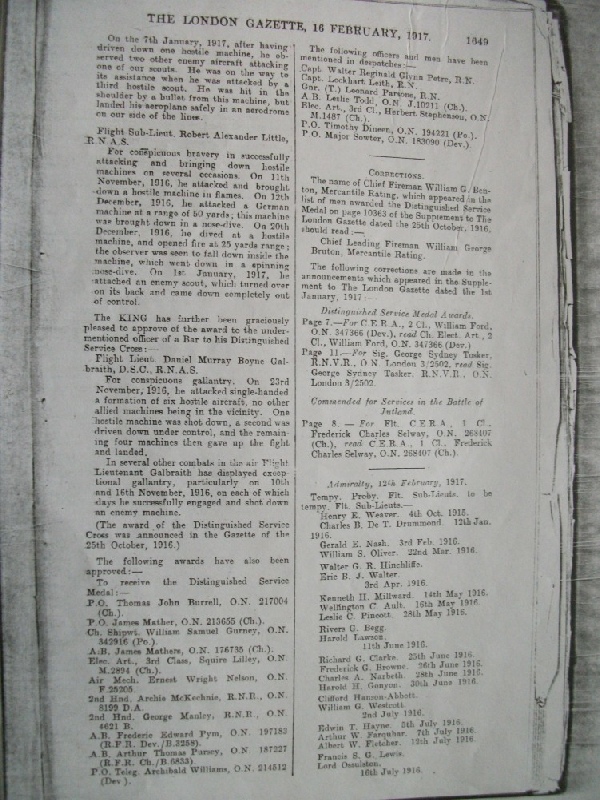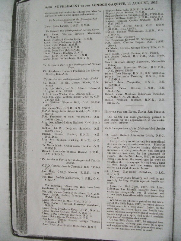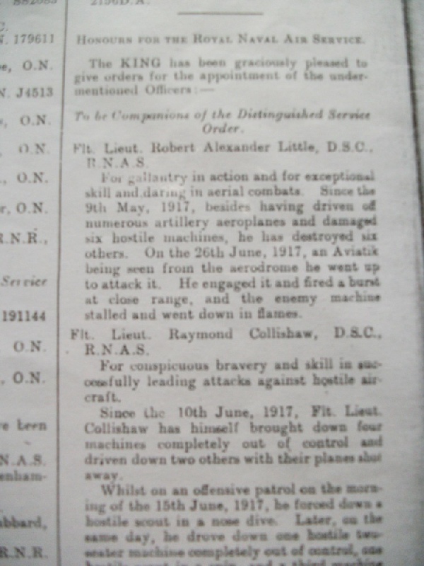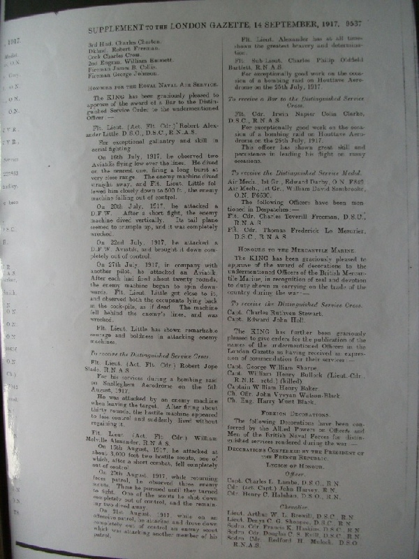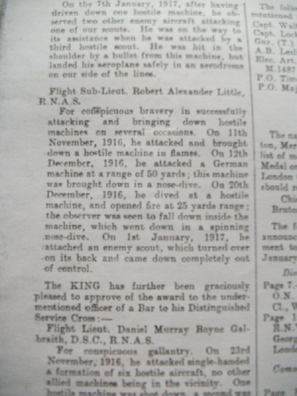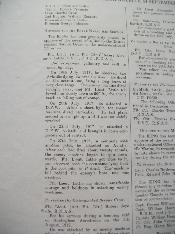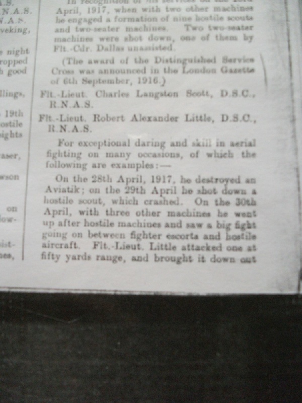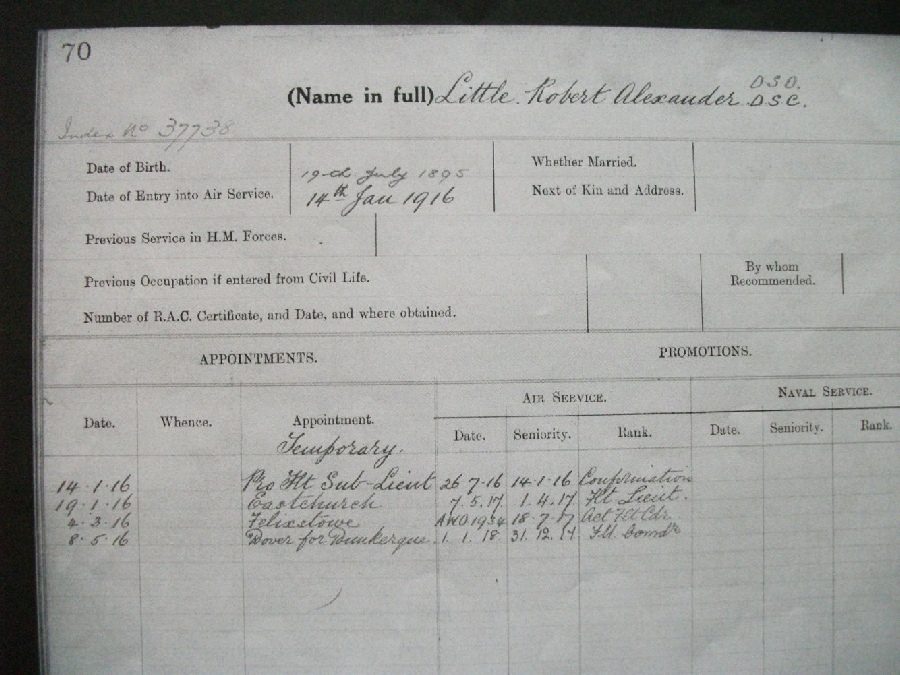 Flight CommanderR A Little DSO & Bar, DSC & BarRoyal Naval Air Service