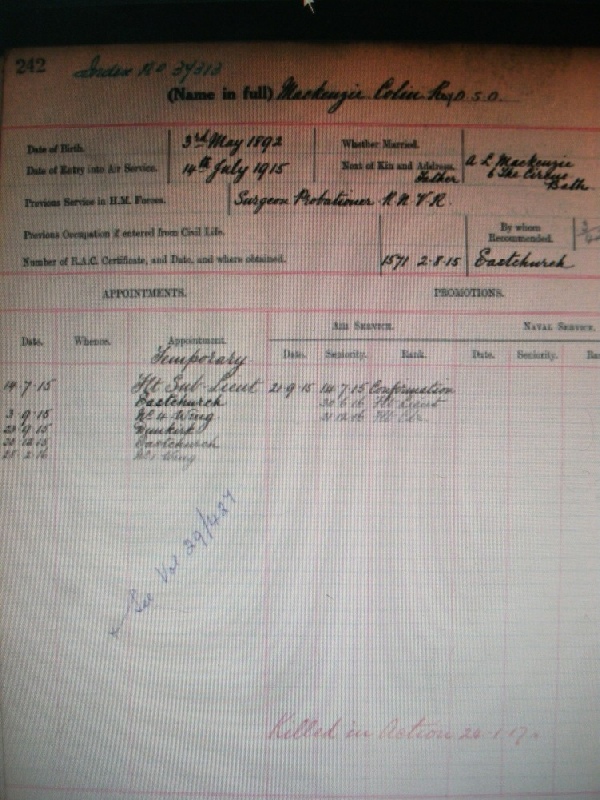 Flight CommanderC R MacKenzie DSORoyal Naval Air Service