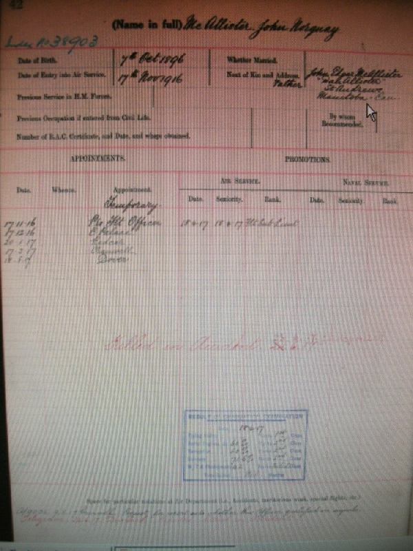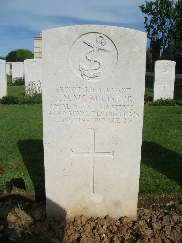 Flight Sub-LieutenantJ N McAllisterRoyal Naval Air Service