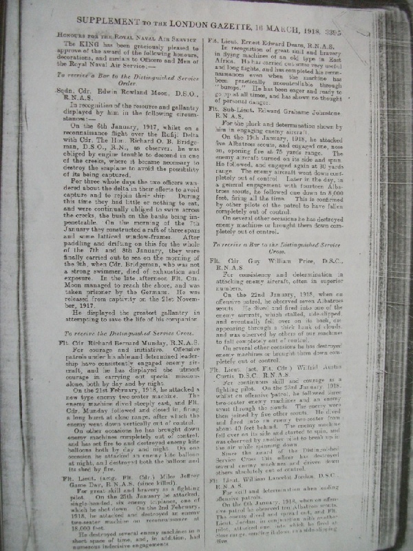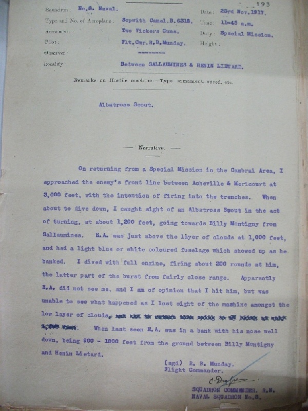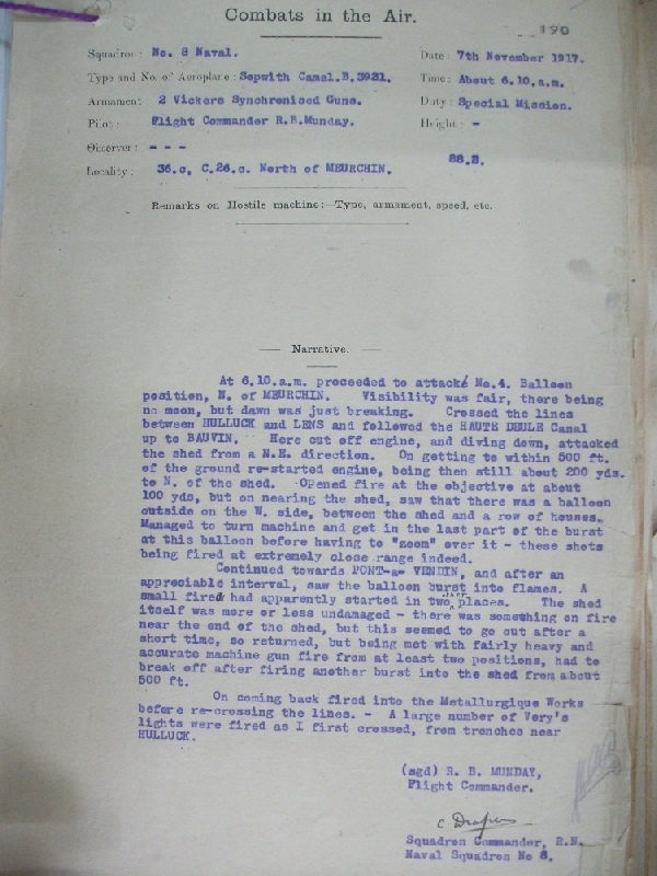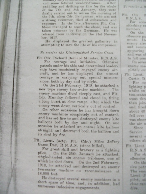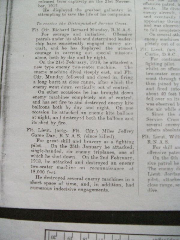 Flight CommanderR B Munday DSO DSCRoyal Naval Air Service