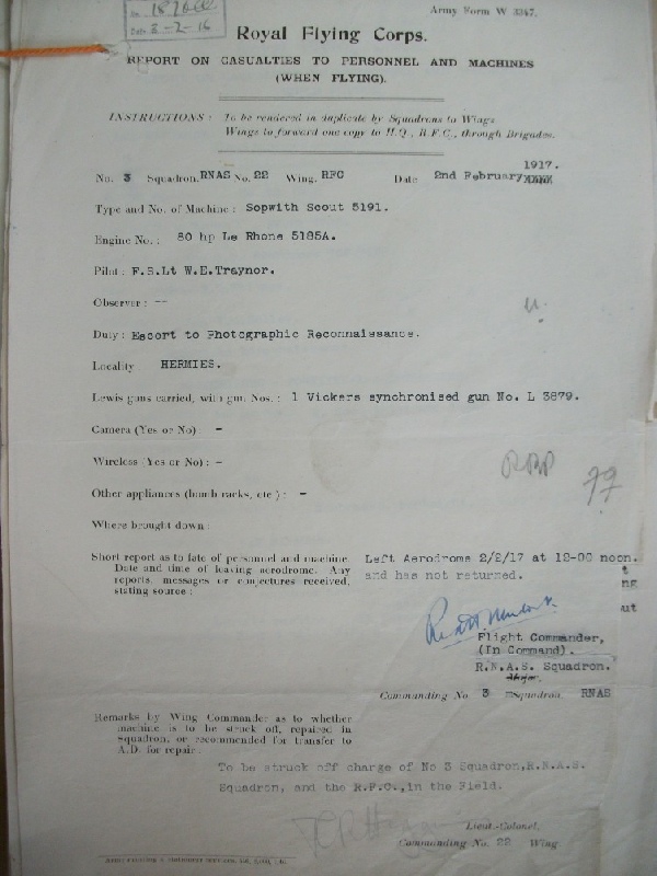 Flight LieutenantW E TraynorRoyal Naval Air Service